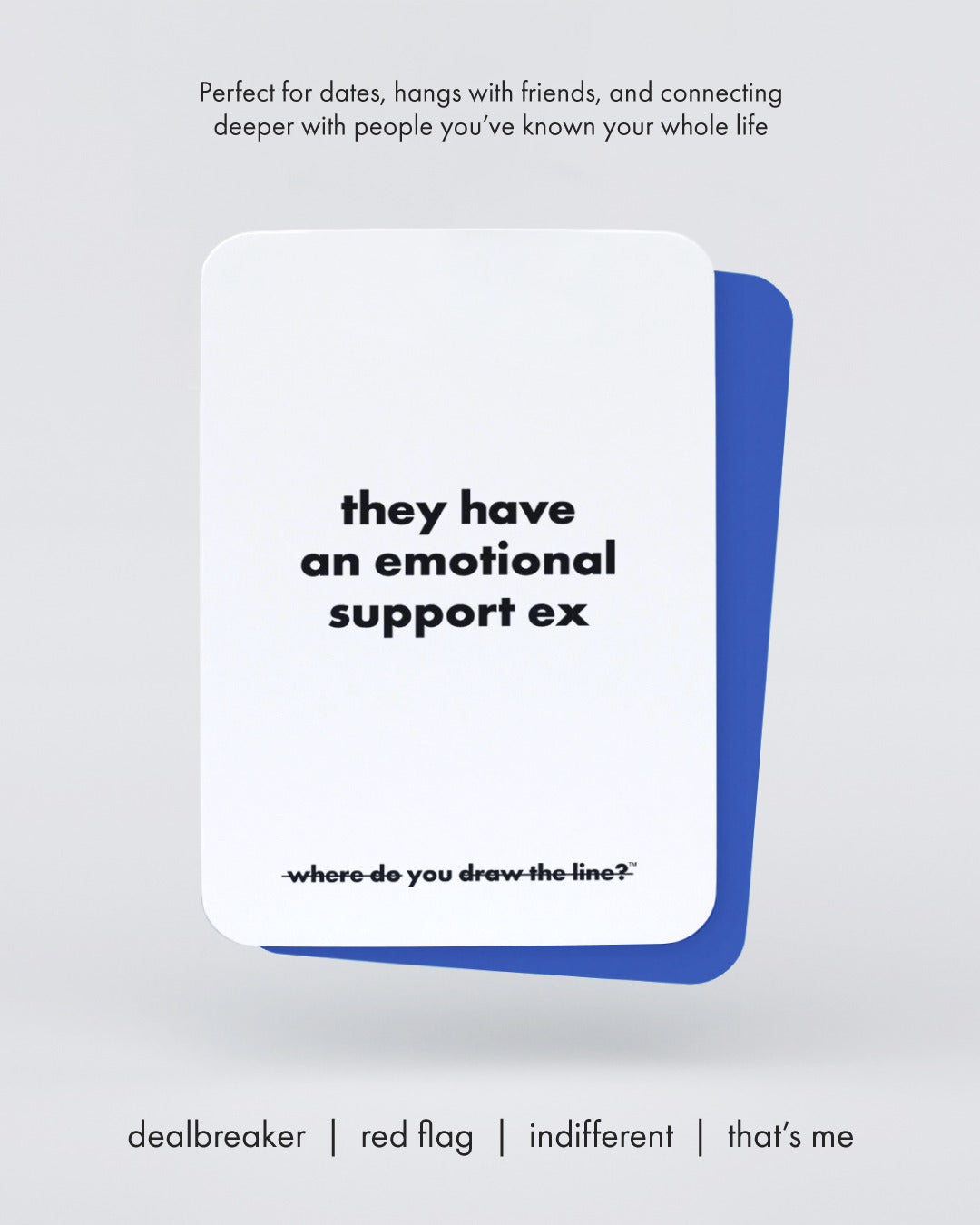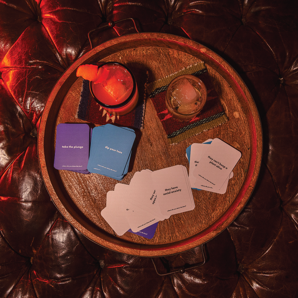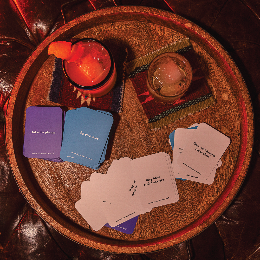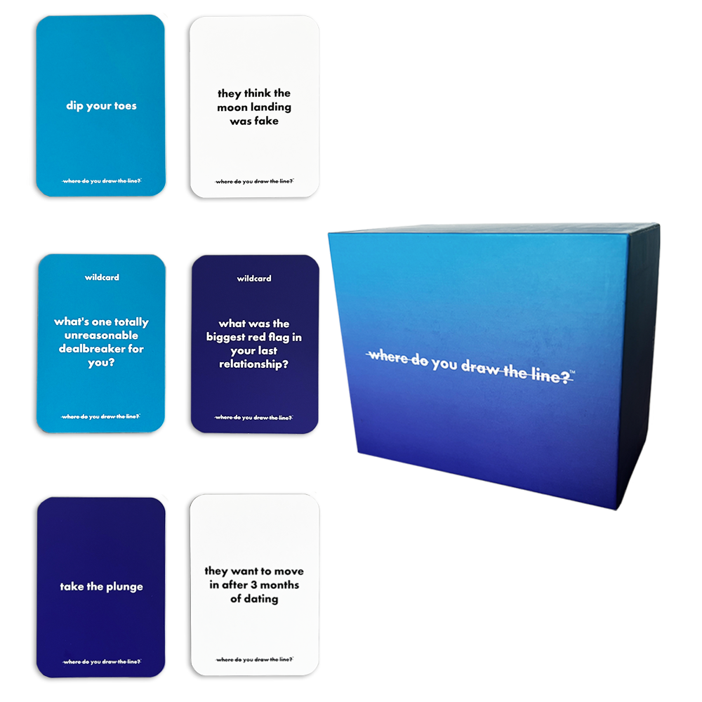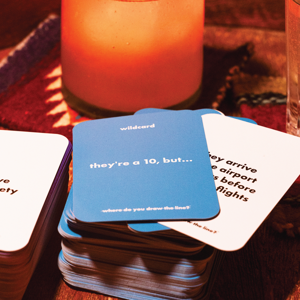 Where Do You Draw The Line? transforms these hidden boundaries into hours of fascinating conversation. Through one-sentence scenarios that could be red flags, green flags, dealbreakers, or things you secretly do yourself—you'll uncover where people really stand... and maybe discover your own boundaries aren't quite where you thought they were.